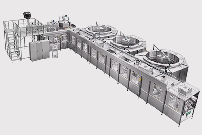 • Linha de produção de máquina de envase de água – Monobloco UltraClean BFC (Sopro-Envase-Fechamento) para engarrafamento de água, com célula de carga, em garrafas de 0,2 L a 10 L.a, em garrafas de 0,2 L a 10 L.
